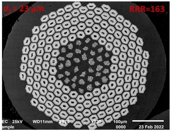 Hyper Tech has developed high performance Nb3Sn wire suitable for applications in high energy physics (e.g., accelerators), light source (helical and planar undulators), research magnets (above 7 T) and commercial applications (e.g., high field MRI systems and fusion). We produce various types of Nb3Sn superconductors including Tube Type, APC and high-Cp wires with different filament sizes.